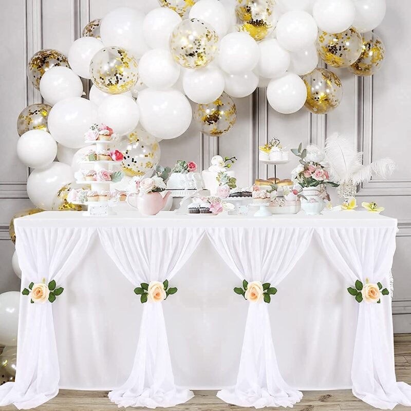 Chiffon Tulle Tutu Party White Table Skirt For Wedding Decoration